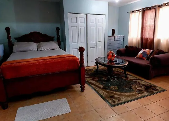 Overlooking the street, the spacious 1-bedroom Comfort Cottage At The Grove Mandeville is at a distance of 2.6 km from Reliance Centre in Mandeville. Wi-Fi is provided for both business and leisure activities.